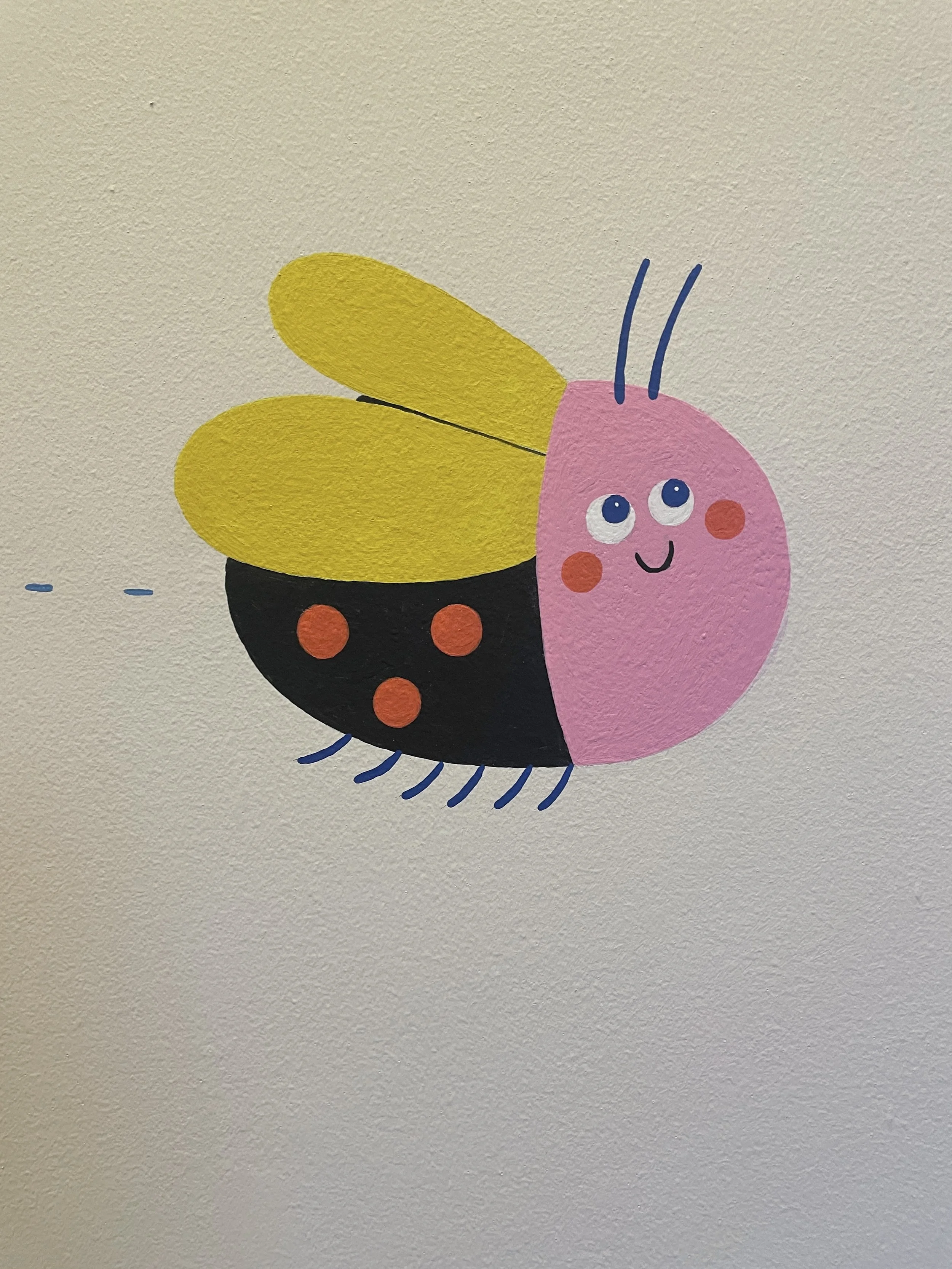 The inspiration actually came from a previous bug mural I’d painted for private clients, Anna and Johnny. It’s always wonderful when one project leads to another!